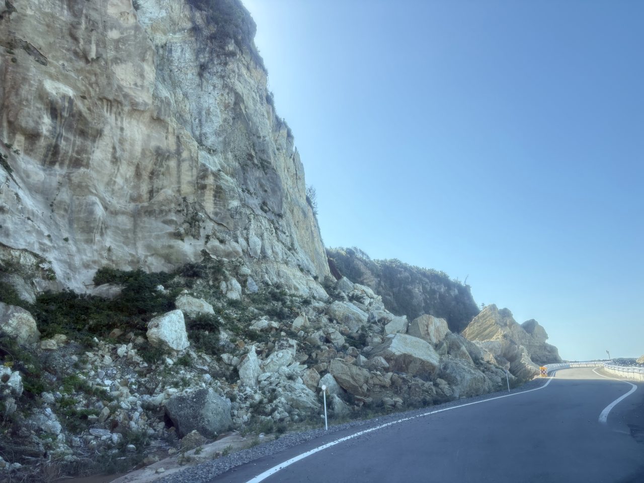 珠洲から輪島に向かう道路は、特に大きなダメージを受けていました。至るところで土砂崩れが発生して片側通行だらけ。海沿いに作られた仮設道路も、いつ崩壊してもおかしくない状況でした。