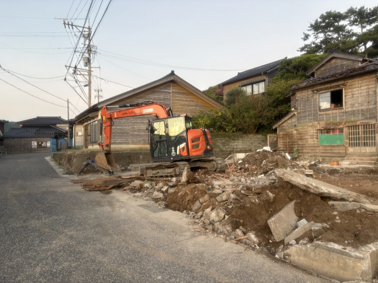 翌日は新田さんのナビゲートで、能登半島を反時計回りに車で一周しました。被害が大きかった珠洲市では、あちこちで重機による解体作業が行われていましたが、崩れたまま解体を待つ家屋も多数見られました。