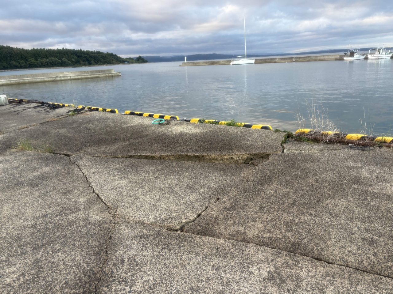 新田さんが暮らす岩車集落の港では、あちこちでコンクリートがひび割れていました。穴水は比較的被害が少なかったようですが、巨大地震の爪痕を目の当たりにしました。